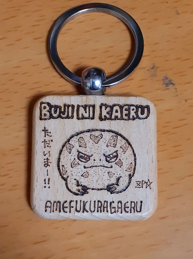 木製キーリングに熱ペンでイラストを手描きした一点ものです ※在庫状況によっては新たに作ってお送りする場合があります ※木材を焦がして描いてあるので使っていても色落ちしません サイズ(木材部):4cm×4cm×0.6cm 20251227