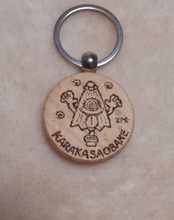 木製キーリングに熱ペンでイラストを手描きした一点ものです